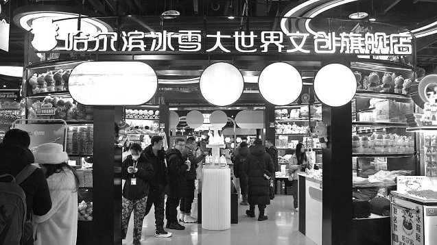 新年伊始,在黑龙江哈尔滨冰雪大世界园区内,哈尔滨冰雪大世界文创旗舰店以其独特的文化产品和创意服务,吸引众多游客前来打卡、消费。在这里,游客可以购买冰箱贴、钥匙扣、明信片、定制帽子、水晶灯、玩偶等琳琅满目的文创产品,感受冰雪文化的魅力。