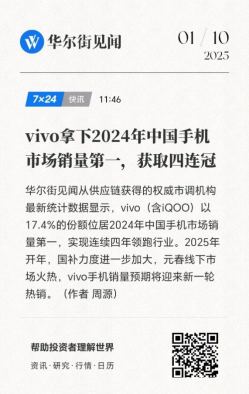 vivo连续四年市场销量第一的背后,不仅仅是好产品的成功,更是科技创新和用户导向型理念的成功。未来随着2025年开年国家补贴政策力度的进一步加大,手机市场或将率先迎来新一轮的热销季,这也让vivo在2025年的全新表现同样值得期待。