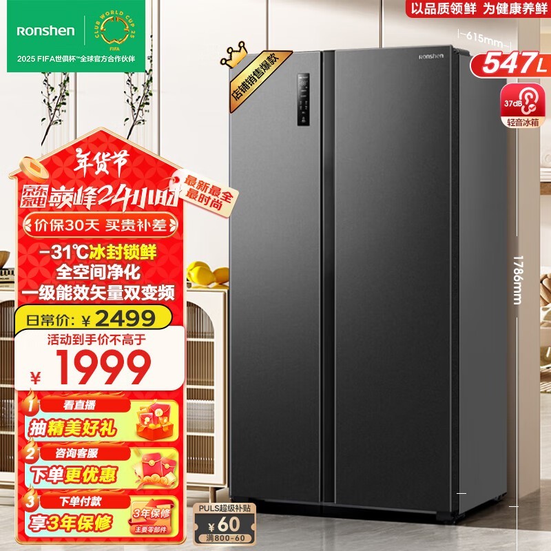 容声双开门电冰箱限时优惠1551元 家庭厨房必备良品