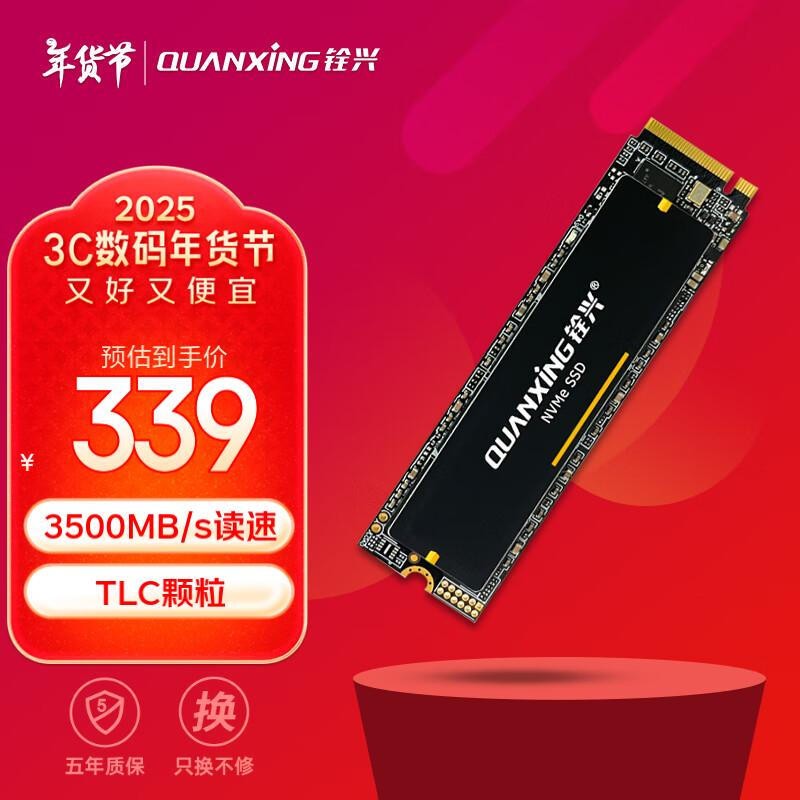 铨兴1TB SSD固态硬盘 419元入手