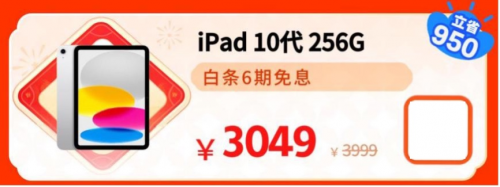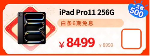 对于偏爱Apple产品的用户,京东年货节也提供了贴心的优惠。采用了全面屏设计、手写和打字都更方便的iPad 10代领券立减950元,到手价3049元,可享6期免息。iPad Pro 11则搭载了新一代M4芯片,机身纤薄性能出众,领券立减500元到手价降至8499元,同样可享6期免息。