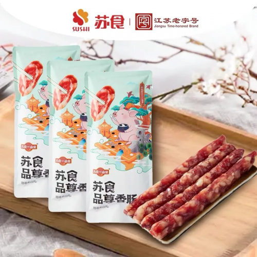 在制作过程中,苏食香肠采用了真空填灌和循环热风烘干等传统与创新相结合的工艺。这些工艺不仅保留了香肠浓郁的香气,还确保了高效且安全的生产加工环境。因此,苏食香肠在阴凉干燥处存放半年之久,依然能够保持肉香满满。