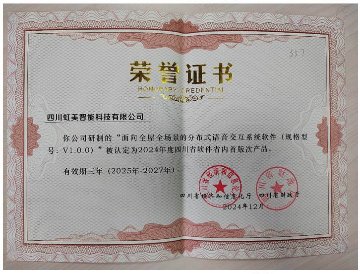 近日,2024年度四川省重大技术装备首台套、新材料首批次、软件首版次产品认定名单正式揭晓,长虹美菱旗下虹美智能公司凭借其自主研发的“面向全屋全场景的分布式语音交互系统软件”成功荣获软件首版次认定。