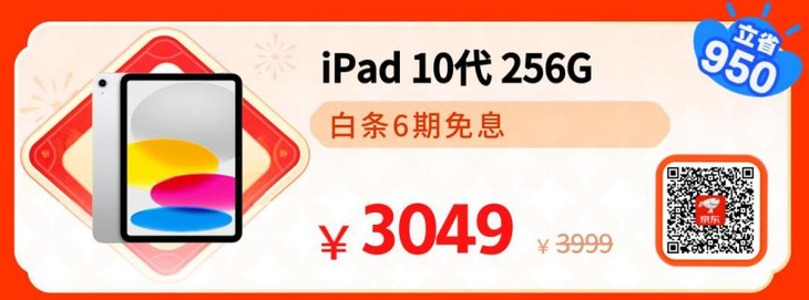对于偏爱Apple产品的用户,京东年货节也提供了贴心的优惠。采用了全面屏设计、手写和打字都更方便的iPad 10代领券立减950元,到手价3049元,可享6期免息。iPad Pro 11则搭载了新一代M4芯片,机身纤薄性能出众,领券立减500元到手价降至8499元,同样可享6期免息。