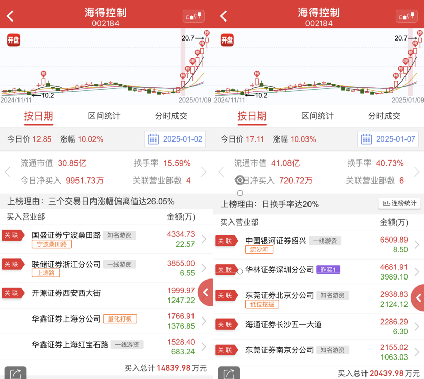 因涉及机器人、新型工业化、数据中心等多个概念,且这些概念都是近期市场资金集中进攻的方向,海得控制也因此成为市场上的“香饽饽”,包括上塘路、桑田路、流沙河等知名游资纷纷现身该股龙虎榜,游资的接力推动其股价持续拉升。