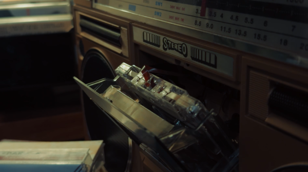 以《爱很简单》这段的舞蹈为例,拍摄者可以自由穿梭在演员中间,做更能够展现歌舞剧优势的动态运镜。同样,小巧的手机也能直接放置在录音机位置,去拍摄录音机卡带特写,这些都是传统拍摄器材所无法具备的优势。