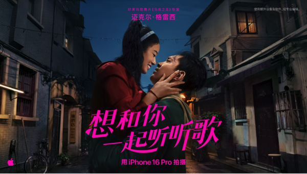 坦率地讲,我认为今年苹果选择“歌舞片”题材,是一个十分大胆的决定。歌舞类型是中国观众和海外观众接受程度差异最大的一种影片类型,歌舞片在国内的受众,远不及其他类型的影片。然而从影片整体的呈现结果来看,使用iPhone 16 Pro拍摄的《想和你一起听听歌》,也是近几年“苹果大电影”中最好看的一部。
