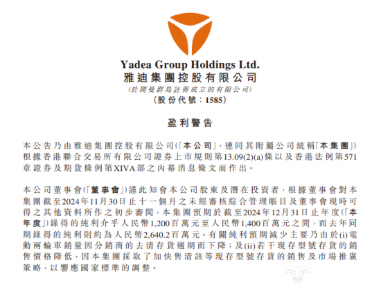 2024年12月27日,电动车“老大”雅迪发布了一则盈利预警公告,引起业界广泛关注,具体怎么回事?