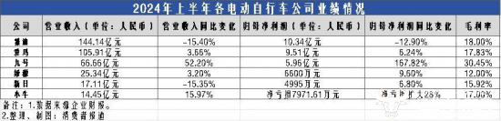 不仅如此,和同行业的电动车企业对比,在半年报中仅次于雅迪业绩的爱玛科技,在上半年爱玛科技的营收净利还均低于雅迪。