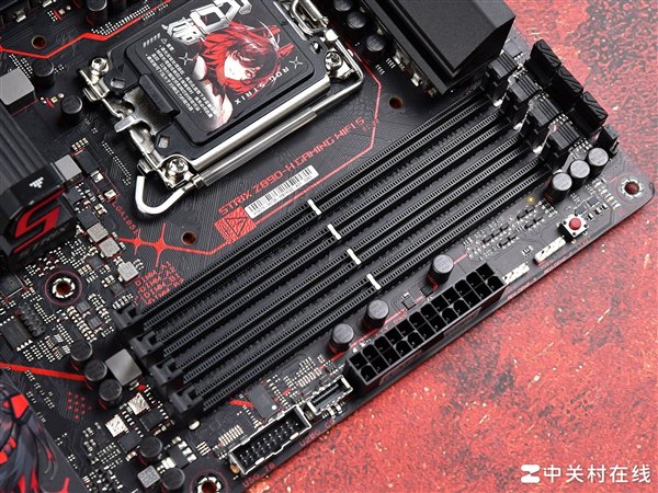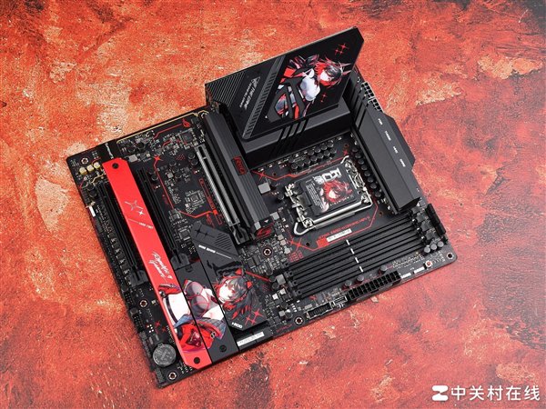 上手之后笔者发现,华硕Z890 RO姬主板从外观上带来的二次元氛围感比吹雪要更强烈,一方面红黑搭配本身视觉效果就突出。