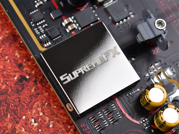 这款主板配备ROG SupremeFX电竞音效系统,除了纯血ROG也只有ROG STRIX系列能见到了,内置ALC1220P音频芯片。