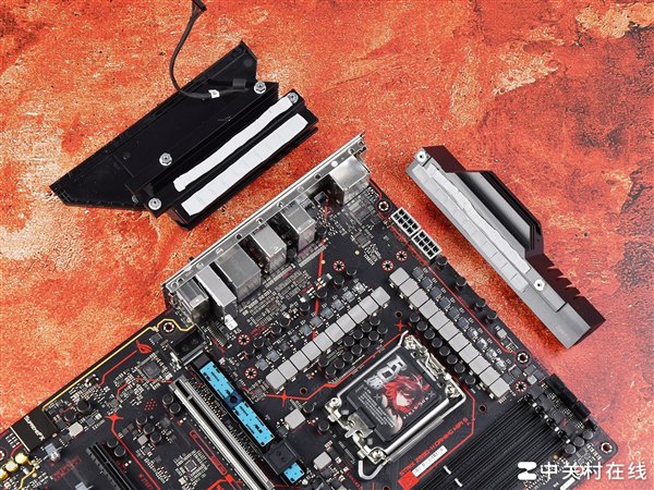 同时为了更好地压榨酷睿Ultra200S性能,华硕Z890 RO姬主板的散热装甲也十分庞大,同时底部配备高效导热垫辅助散热。