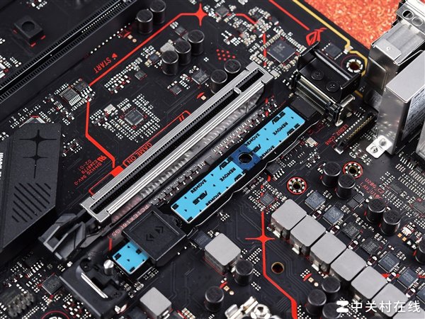 PCIe插槽方面,华硕Z890 RO姬主板配备3根PCIe插槽,PCIe 1槽采用合金装甲设计,支持PCIe 5.0x16,PCIe 2槽和3槽常规设计支持PCIe 4.0x4。
