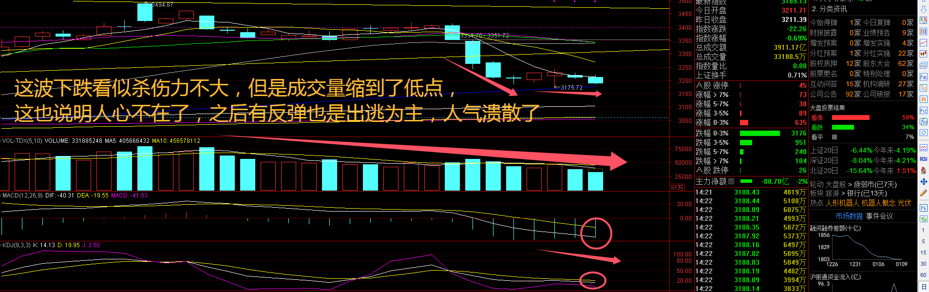 上证指数周五早盘挣扎了以后,午后出现调整,看来“装都不装了”,仍然是极弱行情的走势,下周注意下跌后的低点反弹机会。A股两市震荡回落,但是幅度较小,沪指从3400点下台阶到3200区域之后,逐渐进入震荡行情。目前指数面临压力和支撑共存的局面,如果突破,仍需要时间。从压力因素看,外汇市场由“增强汇率弹性”转为“增强外汇市场韧性”,并新增“加强市场管理”,预计对市场情绪也有明显的安抚。接下来注意上证指数能否在3180点之上稳住。