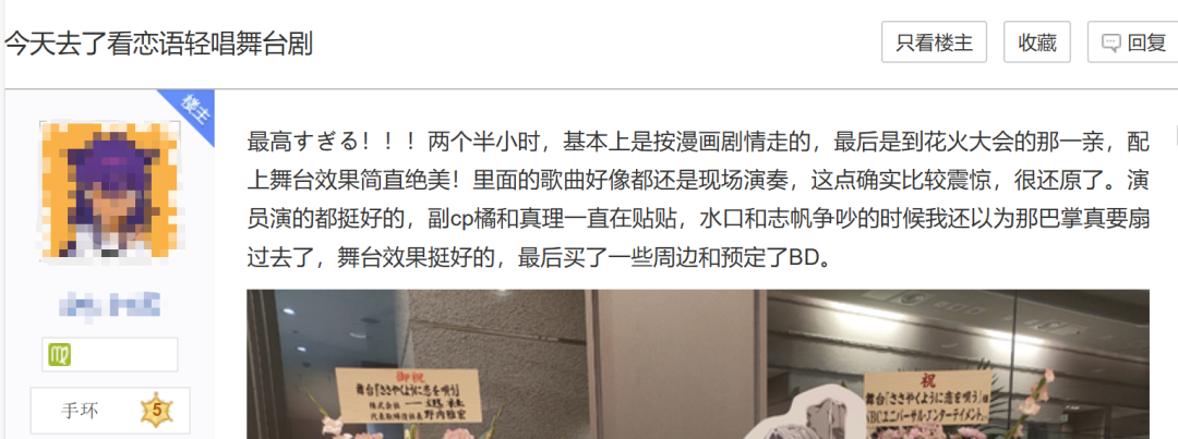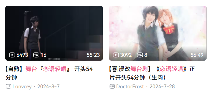 在堪称灾难的动画播出期间,粉丝们还是等来了一些难得的好消息——《恋语轻唱》的真人舞台剧于7月接档动画正式开演,单场表演时长两个半小时,且高度还原原作漫画剧情。以部分观众发布的观后感来看,这场真人舞台剧的表现足以抚平动画带来的创伤,许多无法前往日本的粉丝都在期盼着舞台剧的BD能够早日发售。