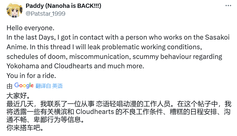 《恋语轻唱》的悲剧,酝酿于动画开播之前。2023年1月,《恋语轻唱》正式宣布动画化。