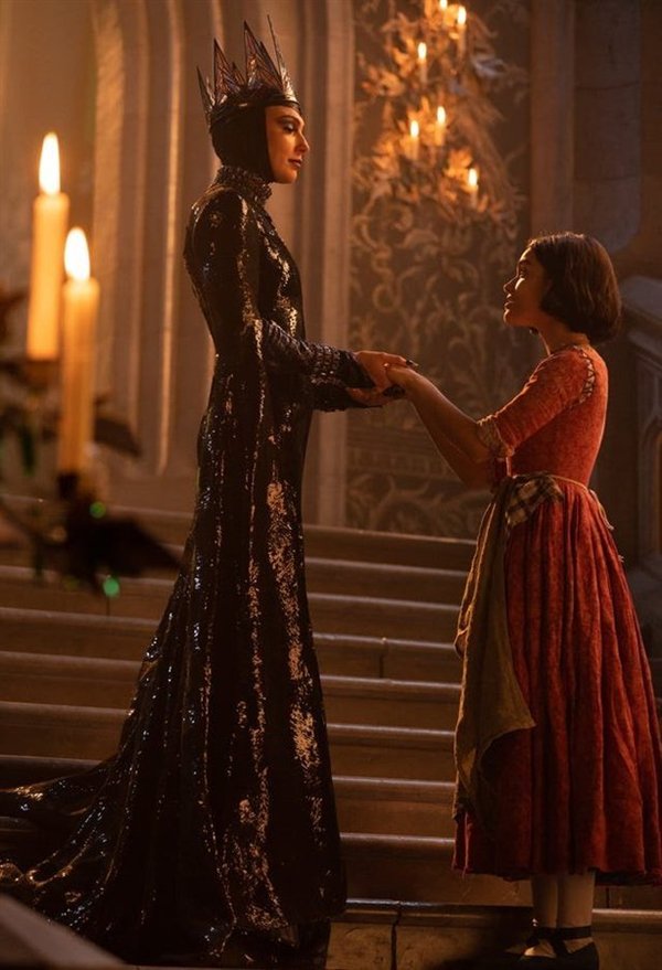 可以看到,片中的量大主角登场同框,邪恶皇后与白雪公主执手而立,但两者差距十分明显。