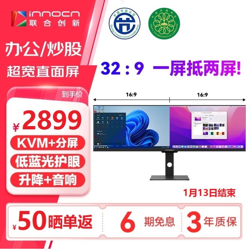 联合创新44C1G显示器大降价啦!120Hz刷新率+5ms响应时间 仅售2799