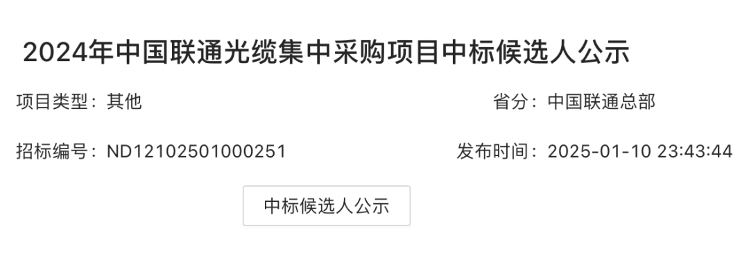 昨日晚间,2024年中国联通光缆集中采购项目公示了中标候选人,共15家厂商入围。