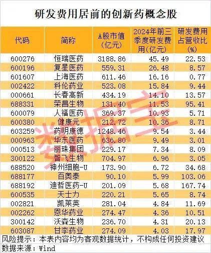 健康元近年来亦持续加大研发投入力度,证券时报·数据宝统计显示,去年前三季度A股创新药概念股合计研发费用达到312.41亿元,占营收比例为5.87%。其中,包括恒瑞医药、复星医药、健康元等8家公司在内的研发费用均超过10亿元,且健康元的研发费用占比亦远高于平均水平。