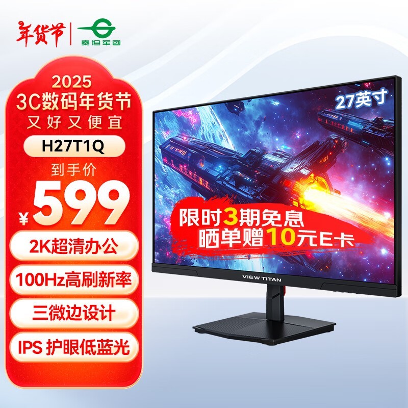 泰坦军团2K显示器589元秒杀中 多轴人体工学底座