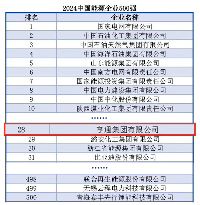 近日,中国能源经济研究院正式公布“2024中国能源企业500强”榜单,亨通集团凭借卓越的实力和产业引领地位,榜单排名连年跃升再创新高,位列第28位,成功跻身中国能源企业前30强。