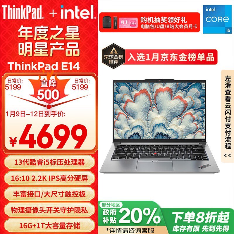 ThinkPad E14 2023款轻薄笔记本电脑 3720元