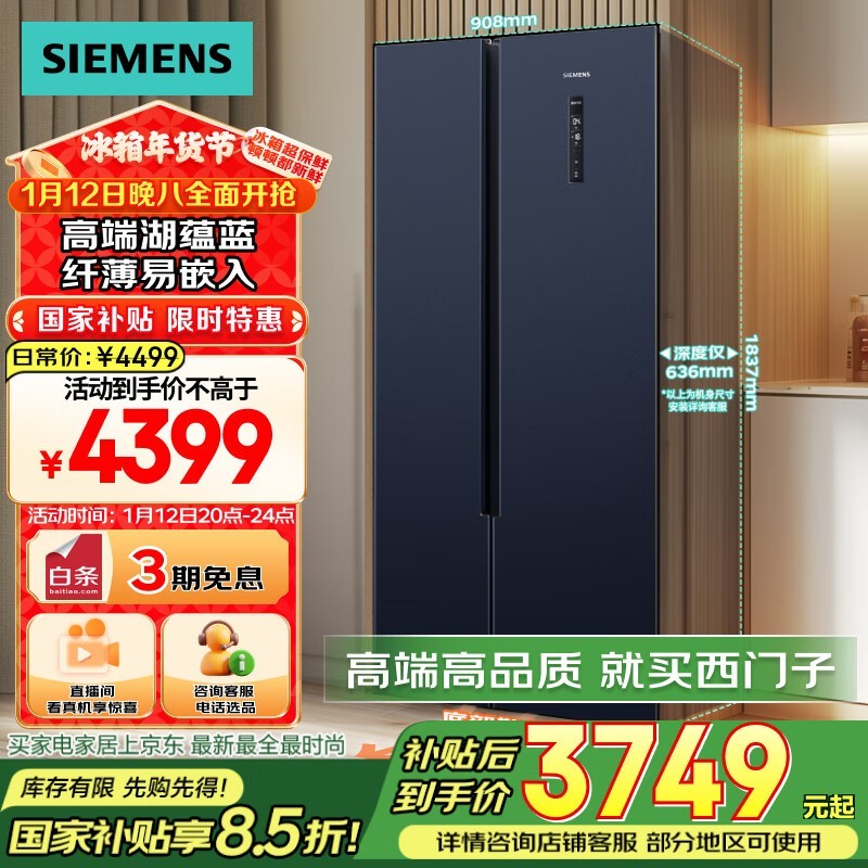 西门子(SIEMENS)对开门冰箱3698元入手
