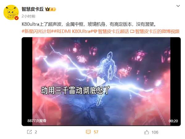 今日,博主“智慧皮卡丘”透露,REDMI K80至尊版将提供高定版本,但没有潜望长焦镜头,影像略有遗憾。