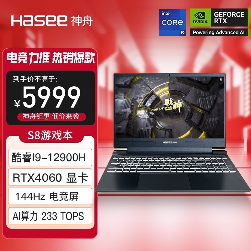 神舟战神S8游戏本 仅售5769元 搭载12代酷睿i9处理器