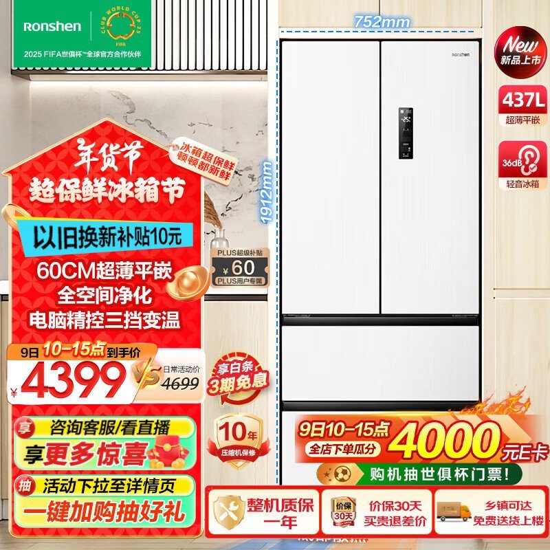 容声437升法式多门对开四开门电冰箱 3190元