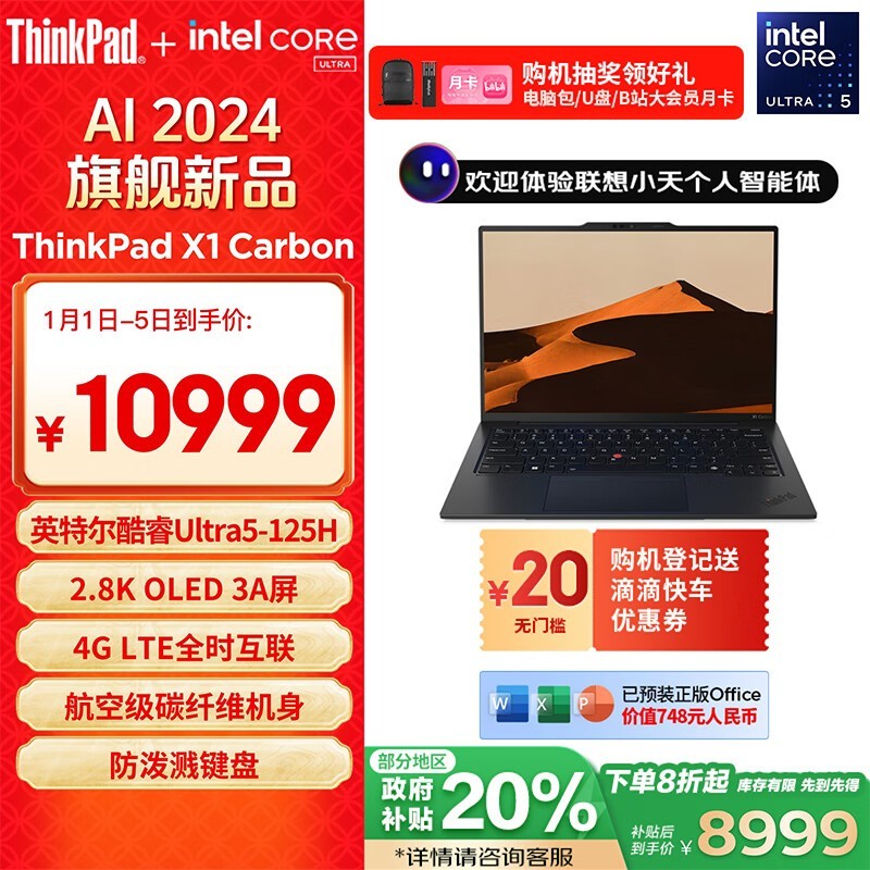 联想ThinkPad X1 Carbon AI 2024 酷睿Ultra5 125H到手价8824元