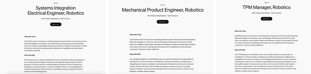 OpenAI 的目标是开发「通用」、「自适应」和「多功能」的机器人,能在真实世界中展现接近人类的智能。为此,硬件团队将自主开发传感器和计算组件,并由自研的 AI 模型驱动。