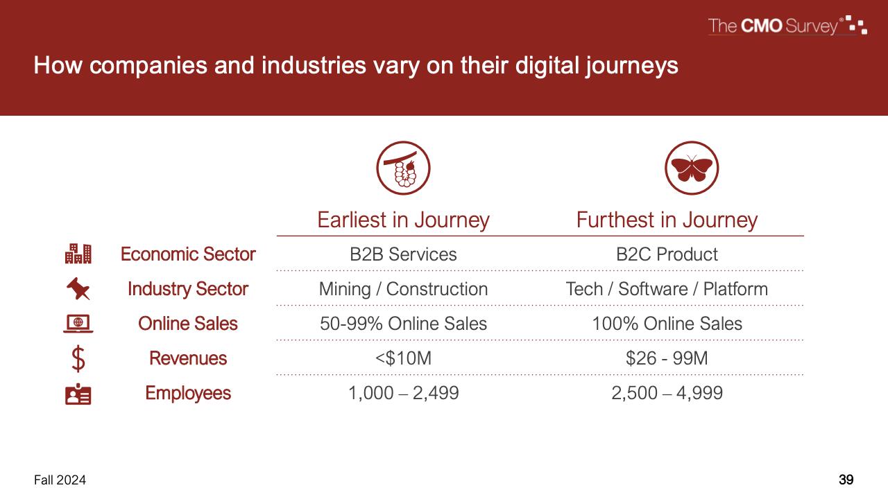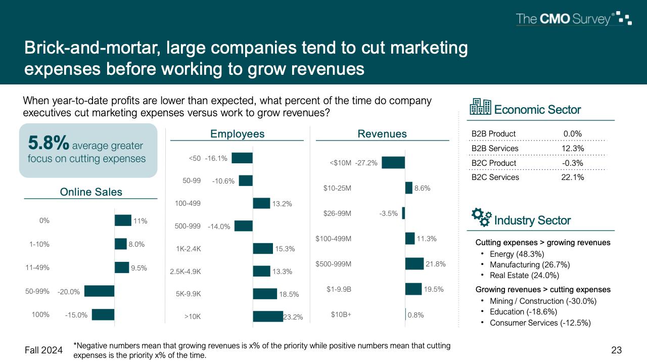 值得注意的是,服务公司(包括B2B和B2C)在努力增加收入之前,更有可能削减营销费用,而产品公司则更加公平。最大的公司也最有可能削减营销费用。
