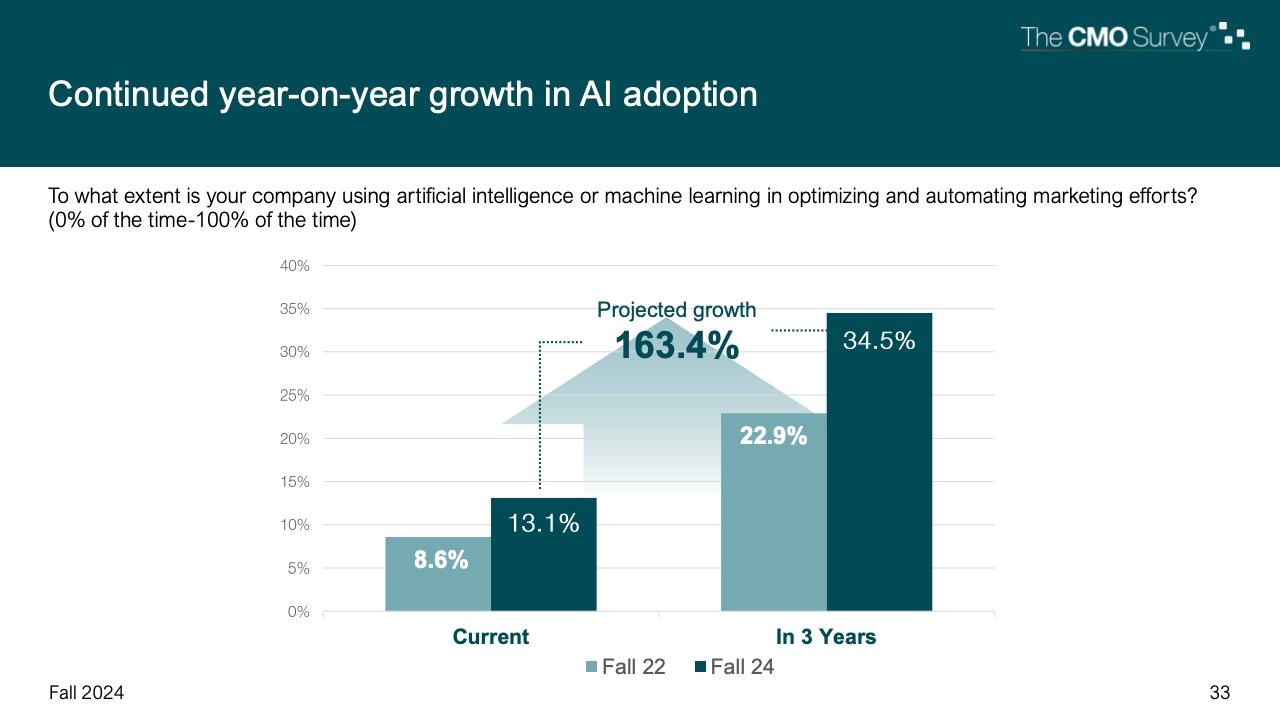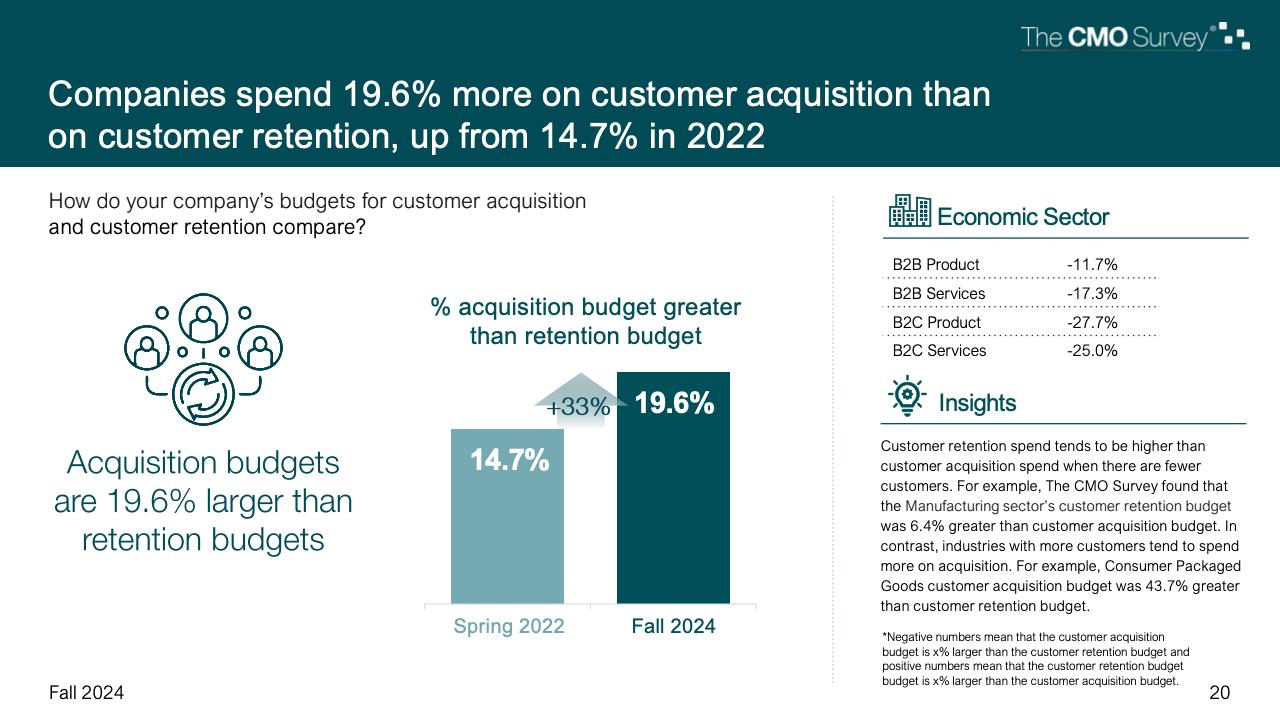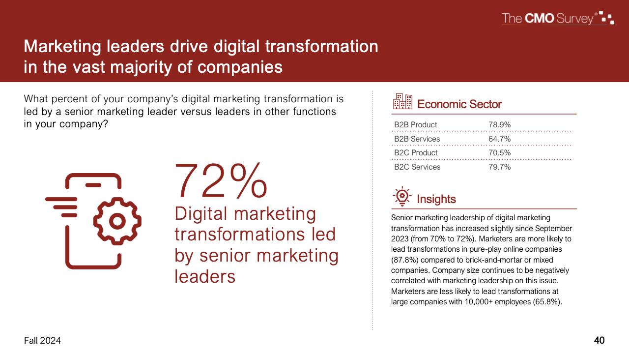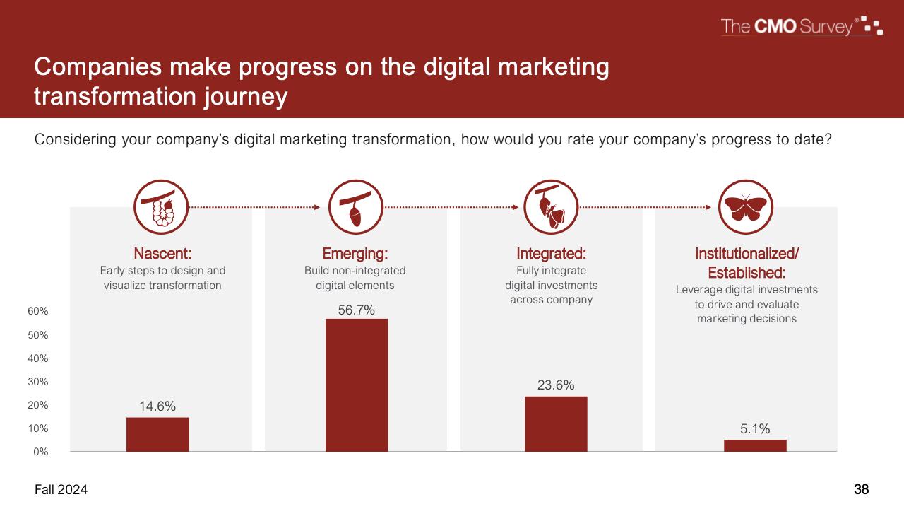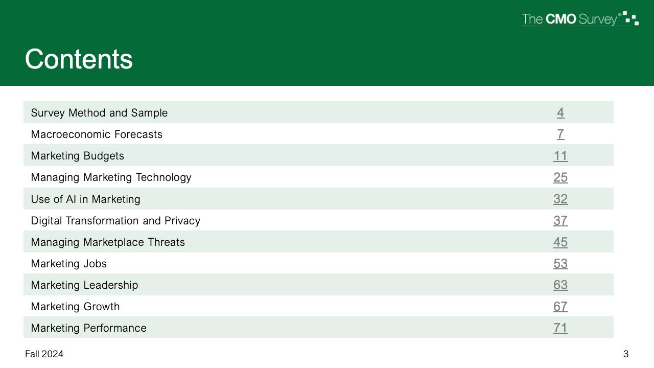 进一步下降的是首席营销官对营销费用占公司销售收入比例的估计。在最新的2024年秋季报告中,这一比例降至7.7%,是大流行和大流行后时代的最低比例。