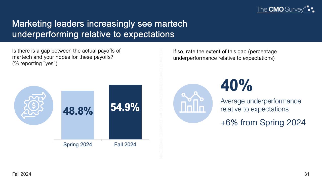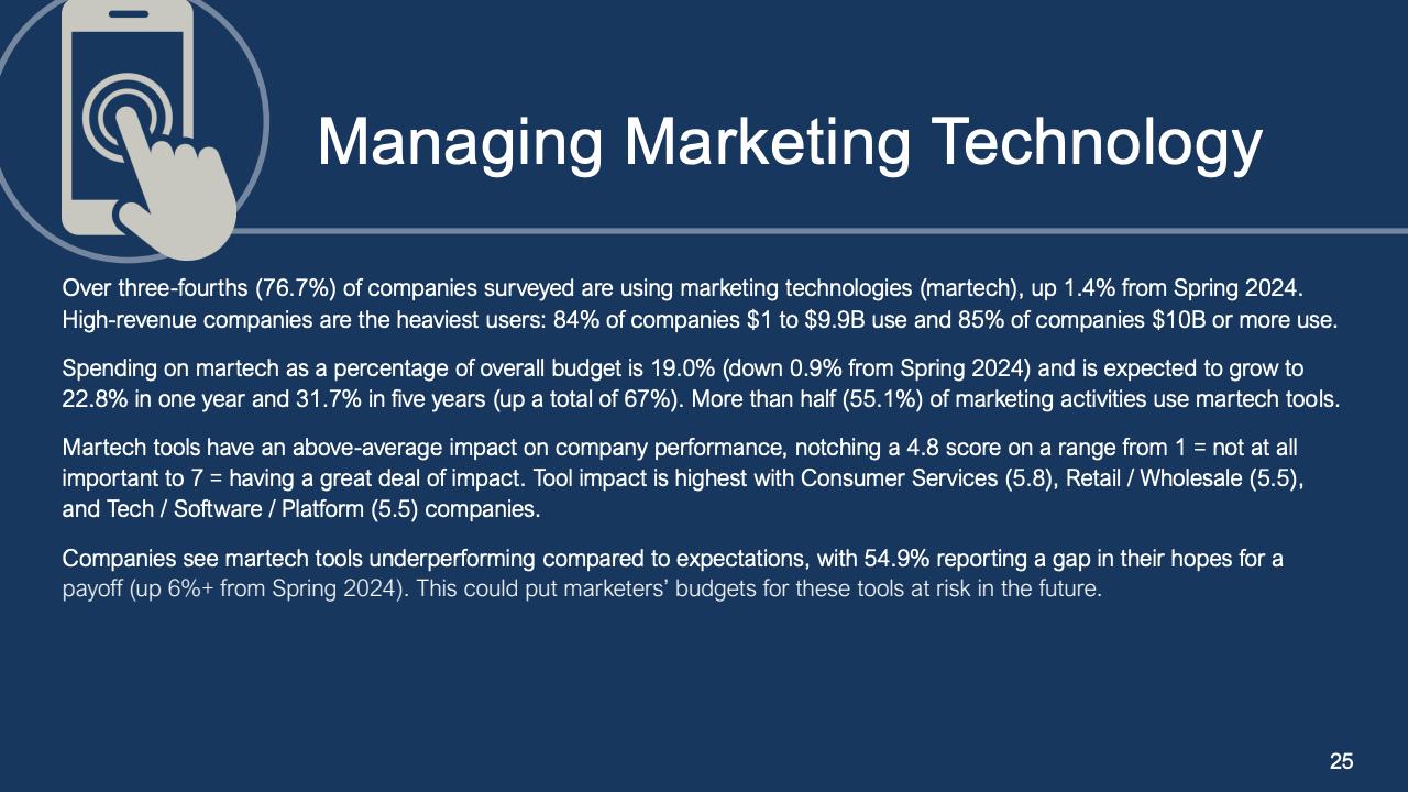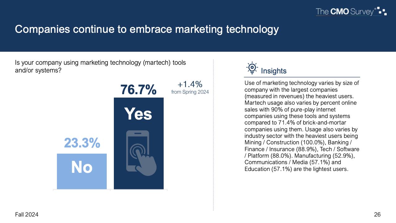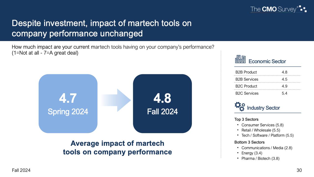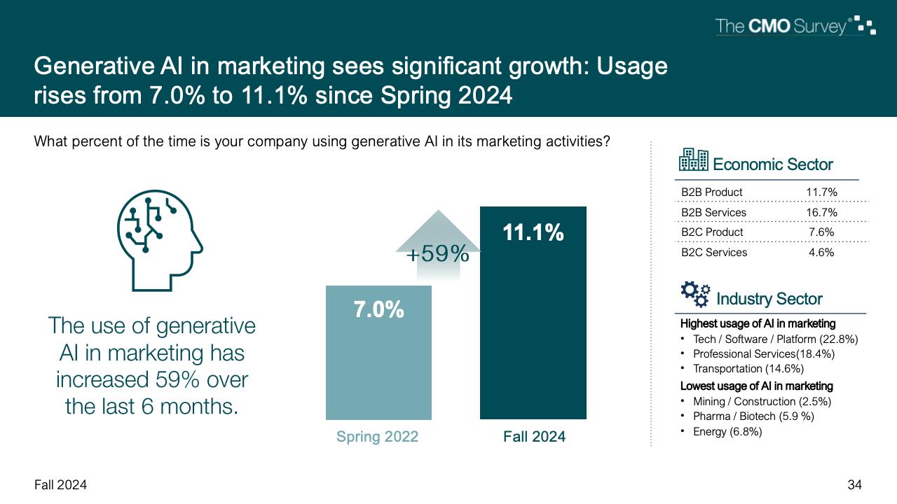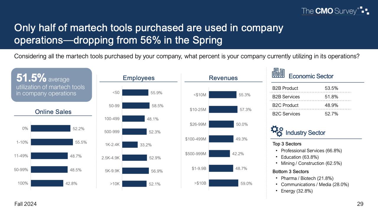 进一步下降的是首席营销官对营销费用占公司销售收入比例的估计。在最新的2024年秋季报告中,这一比例降至7.7%,是大流行和大流行后时代的最低比例。