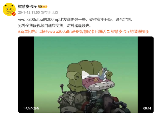 【CNMO科技消息】近日,博主“智慧皮卡丘”透露,vivo X200 Ultra配备的2亿像素长焦镜头,相比友商的有所提升,进行了硬件上的小幅升级,该镜头为联合定制。此外,新机的全焦段视频自适应变焦技术,防抖性能遥遥领先。博主在评论区表示,vivo X200 Ultra相较于上一代产品是一次重大迭代,升级幅度显著。