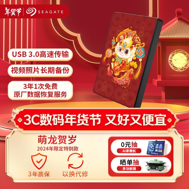 希捷5TB USB3.0高速移动硬盘限时优惠969元!