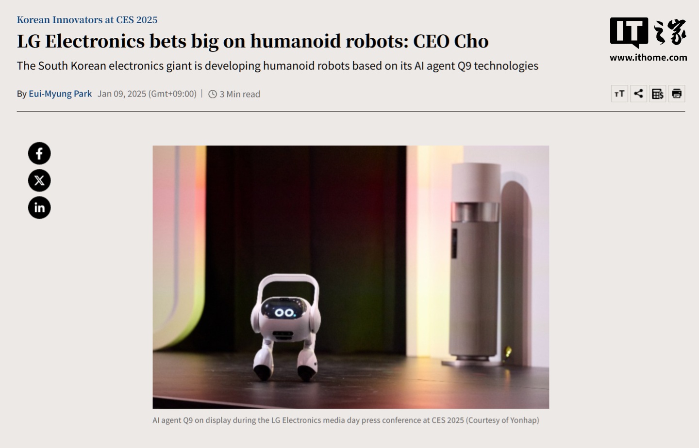 据韩国经济日报当地时间 9 日报道,LG 电子通过推出自家研发的人形机器人,正式向在 AI 机器人竞赛中处于领先地位的对手们发起挑战。