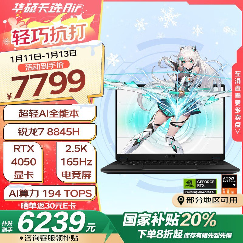 华硕天选Air 2024限时优惠 7799元入手