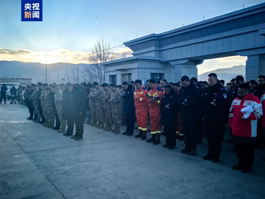 1月13日上午9点30分,西藏日喀则市定日县、拉孜县、定结县等多地举行哀悼活动,向地震遇难同胞默哀。