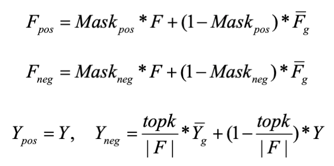 3. 生成反事实样本:用 Encoder 提取的全局平均数据特征替换可替换的特征因子,得到反事实正 / 负样本,对于正样本,标签不会改变。对于负样本,使用加权平均值来生成反事实标签: