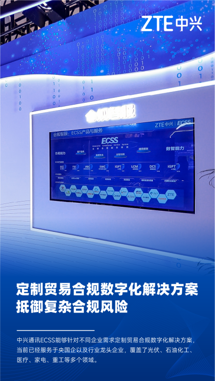 在数据合规层面,中兴通讯依托于自身的合规需求和数据积累孵化出企业合规服务系统(Enterprise Compliance Service System,简称ECSS),该系统集成了出口管制物项分类、产品筛查、主体筛查、受制裁国家/地区识别、数据与审计报表输出等核心功能,全面提升贸易合规管控的效率。