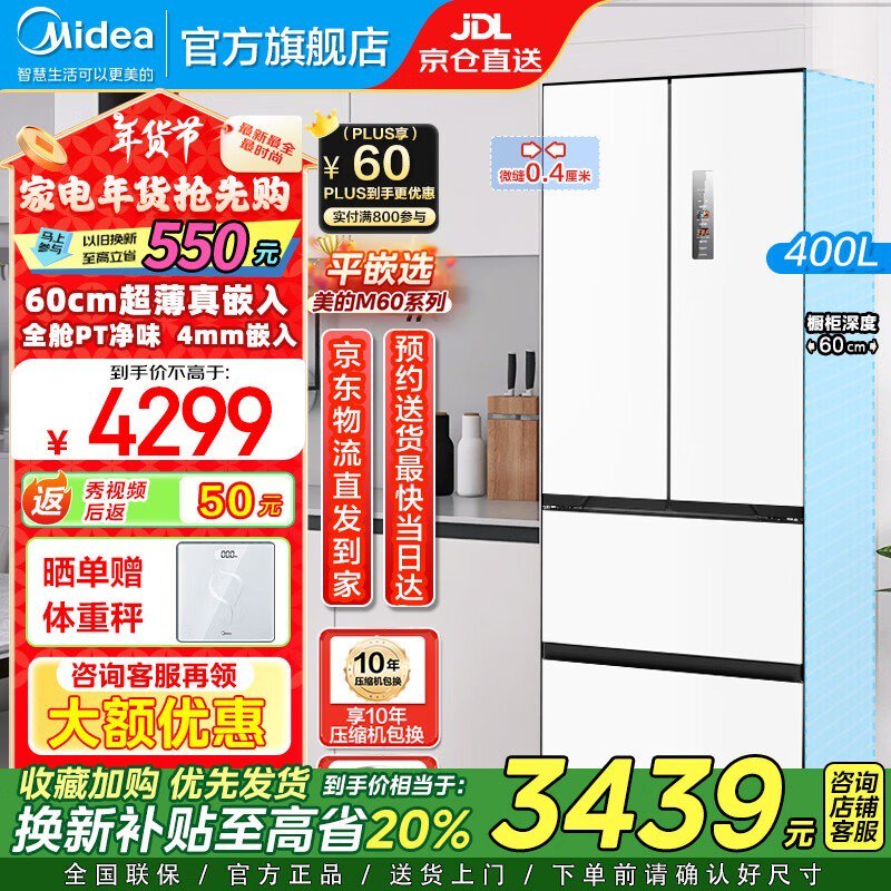 美的(Midea)冰箱MR-420WUFPZE 3414元入手