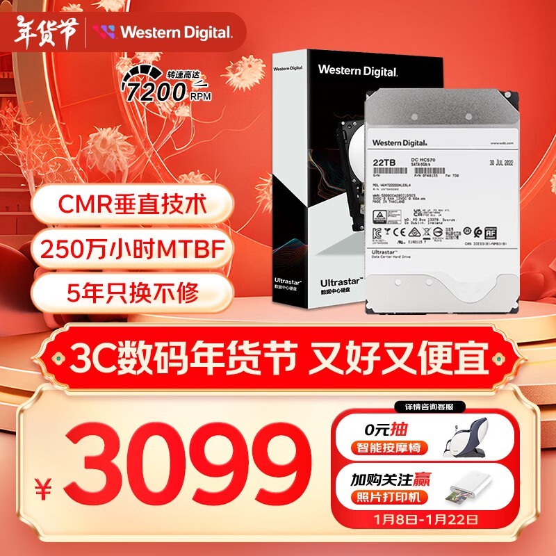 超值优惠!西部数据HC570企业级硬盘3099元带回家