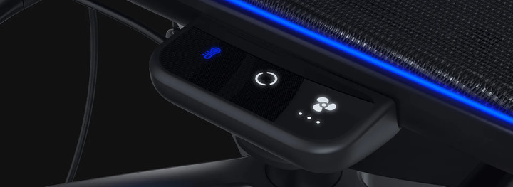 这一套温度系统的「遥控器」位于椅子座垫的右侧,只提供了三个按钮,支持触控感应。
