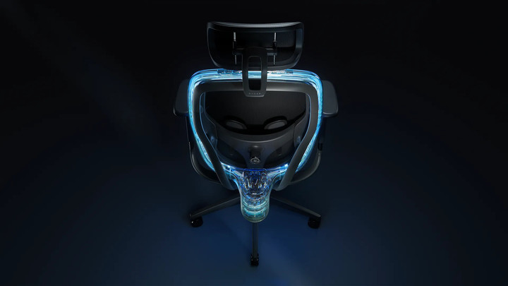 另一个部分则以三档不同速度的无叶片风扇系统为主,管道环绕在座椅背部的边缘,通过一些小孔将大量空气送至人体,据雷蛇宣称,制冷系统可以在较为干燥的环境中将体感温度降低至 2-5°C。