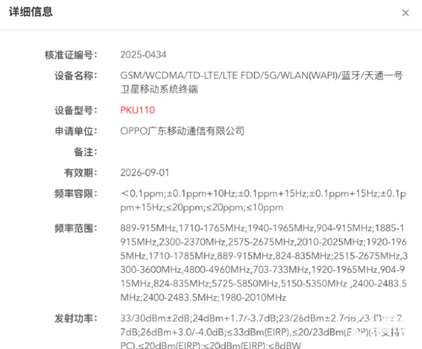 近日,PChome发现,OPPO一款型号为“PKU110”的卫星移动系统终端通过了工信部认证。结合OPPO的产品规划来看,该产品或为OPPO Find X8 Ultra。