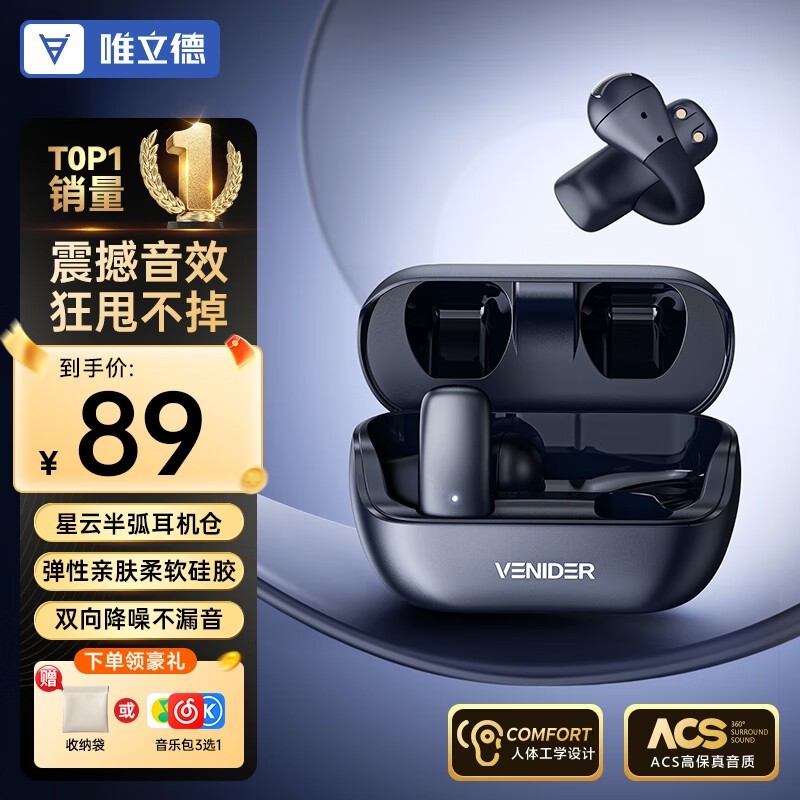 唯立德蓝牙耳机到手价78.56元,音质太棒了!