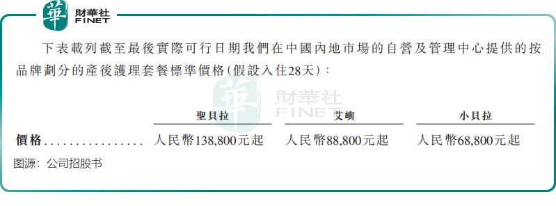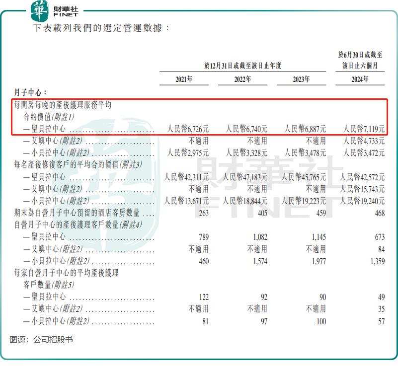 与国内大部分月子中心不同,圣贝拉以“高端”定位打响知名度。2024年上半年,其圣贝拉中心每间房每晚的产后护理服务平均合约价值高达7119元(单位人民币,下同),28天产后护理套餐价格更是从13.88万元起步。